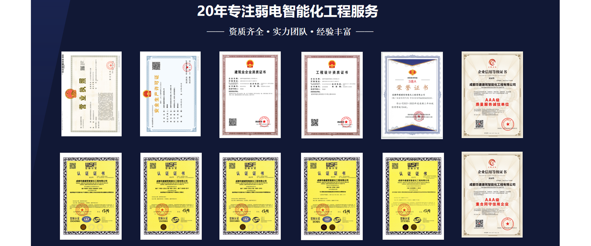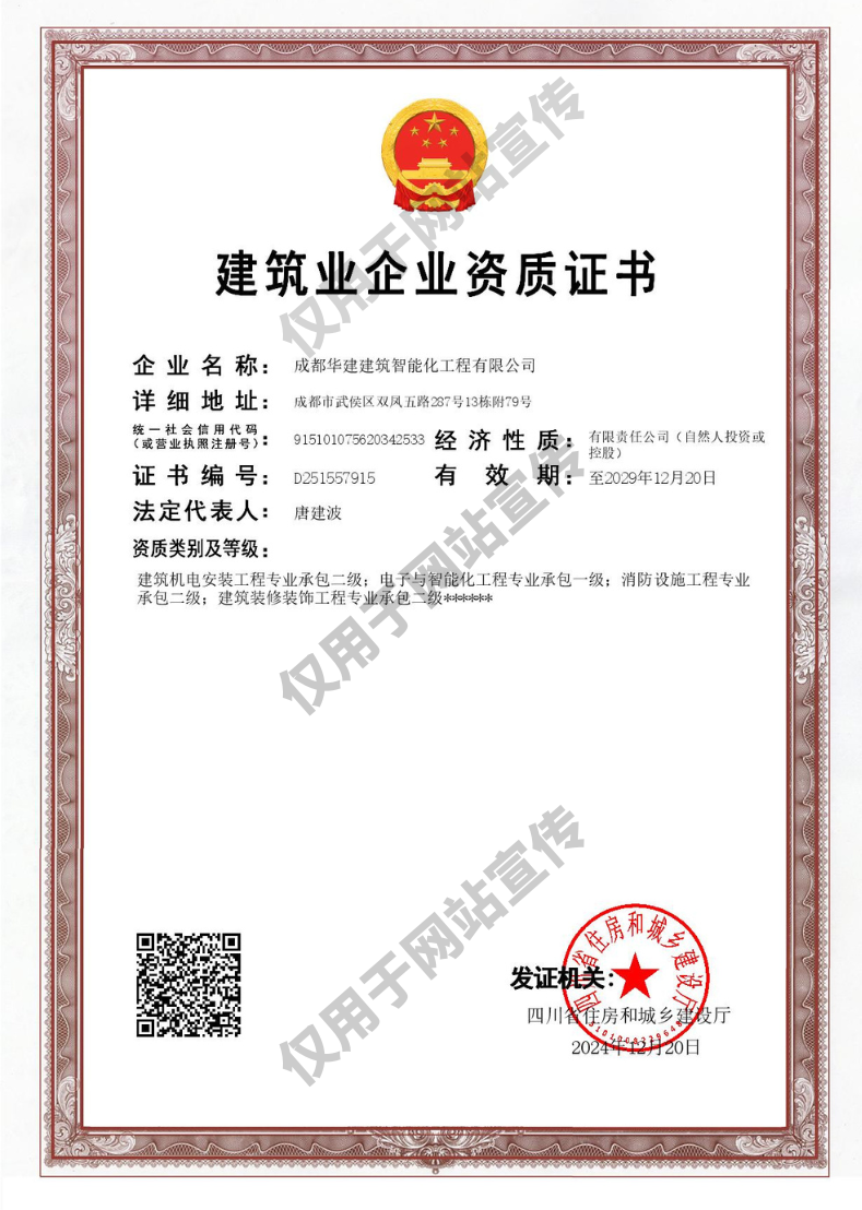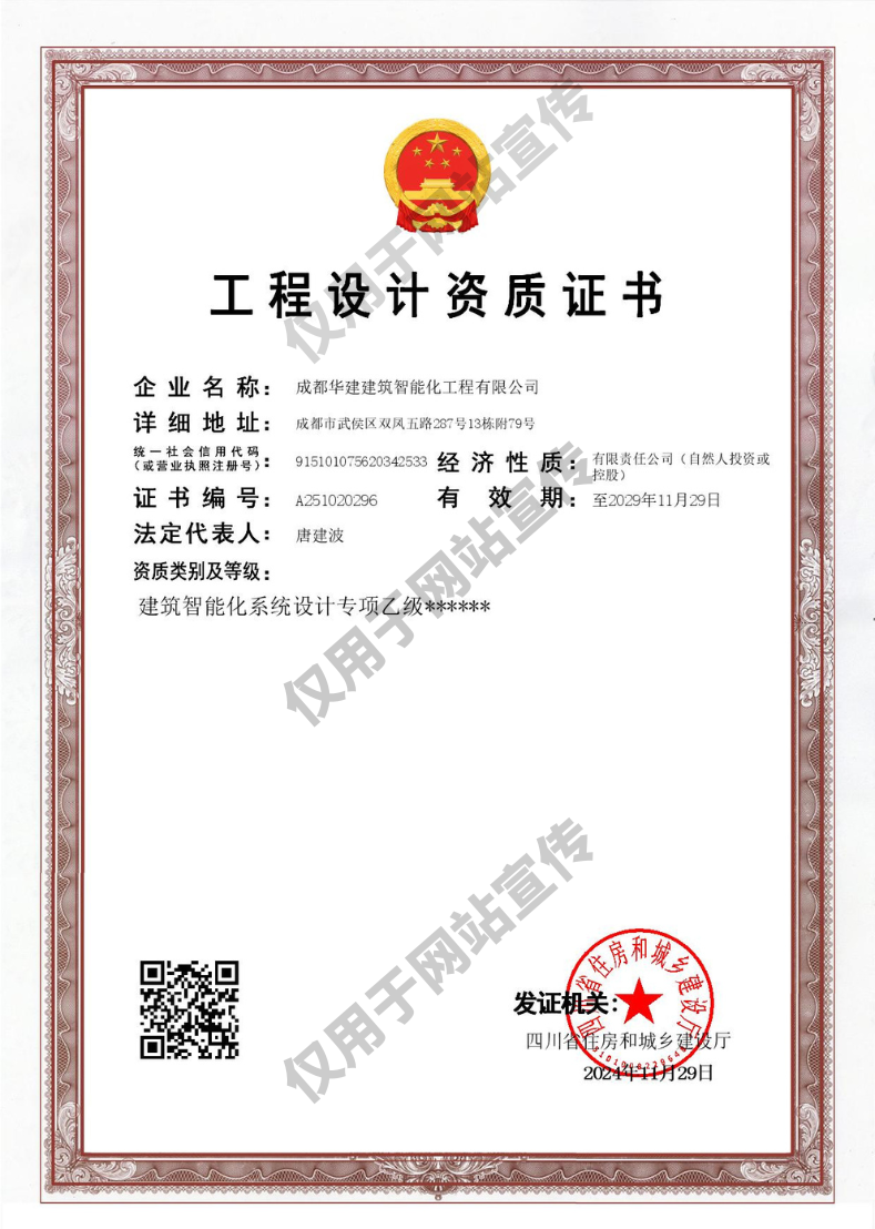 成都華建建筑智能化工程有限公司,19年專注弱電智能化工程、消防工程、建筑機(jī)電安裝工程的專業(yè)公司,具備電子與智能化工程、消防設(shè)施工程、建筑機(jī)電安裝、建筑裝修裝飾、建筑智能化設(shè)計(jì)等相關(guān)30余項(xiàng)資質(zhì)及證書(shū)。設(shè)計(jì)、施工和維保一站式服務(wù),多行業(yè)中大型成功交付案例。…